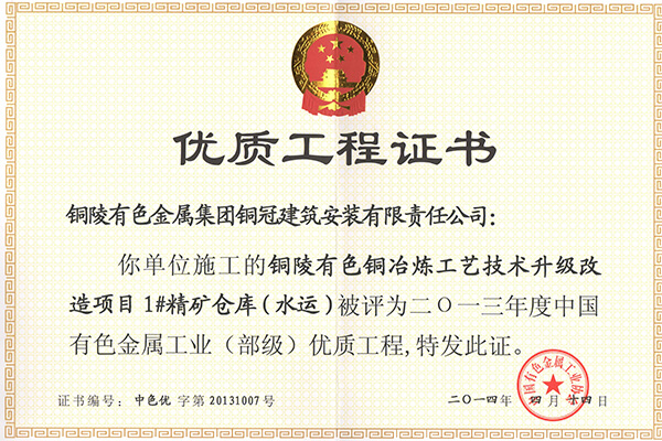 • 銅山磨浮—安裝優(yōu)質(zhì)工程獎